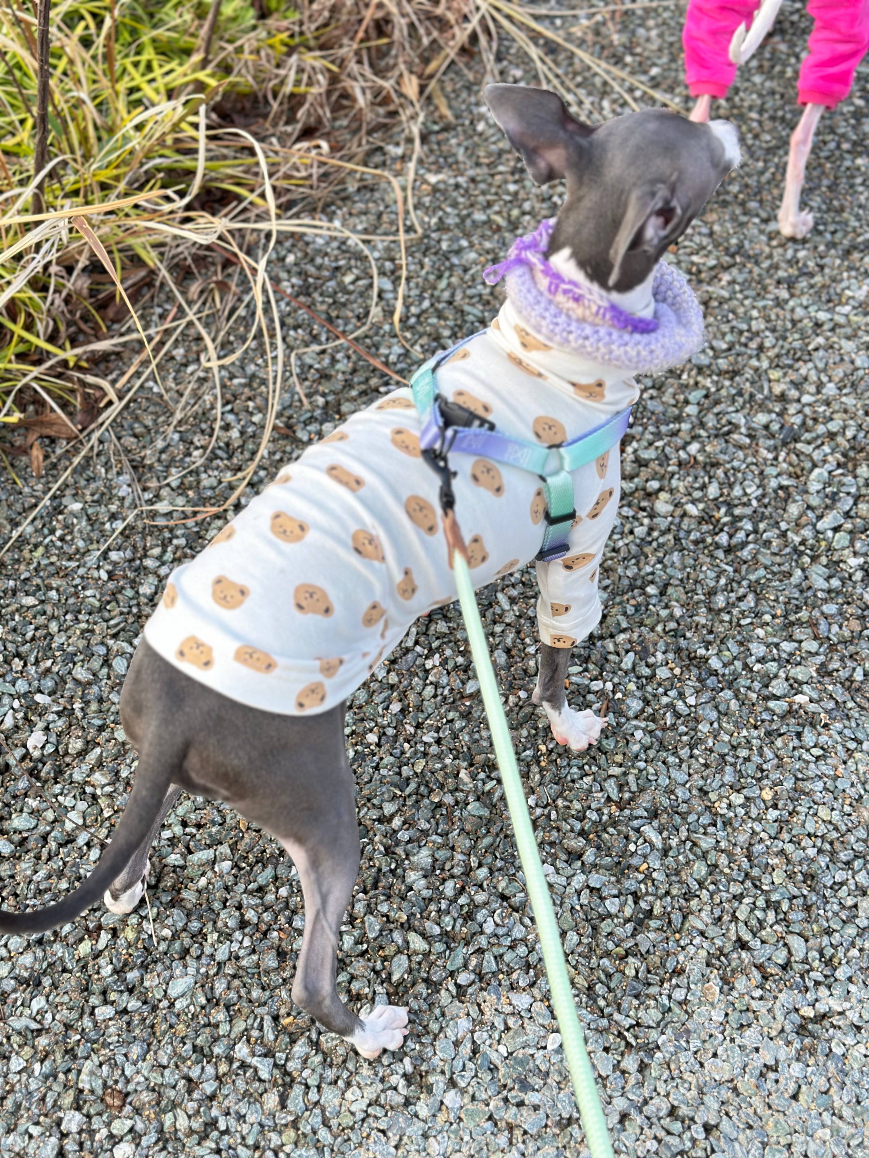 ハーネスの長さも調節できるので、スルッと脱げちゃう心配はありません。1年中使えます。